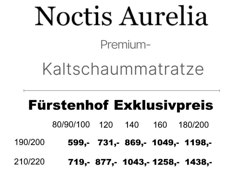 Mit ihrer 4‑Sterne‑Bewertung steht die Noctis Aurelia für gehobenen Schlafkomfort zum fair kalkulierten Preis. Sie ist die richtige Wahl für anspruchsvolle Schläfer, die auf Qualität, Komfort und Langlebigkeit setzen. Besonders überzeugend: 10 Jahre Garantie auf den Matratzenkern – ein klares Zeichen für dauerhaft verlässliche Qualität.