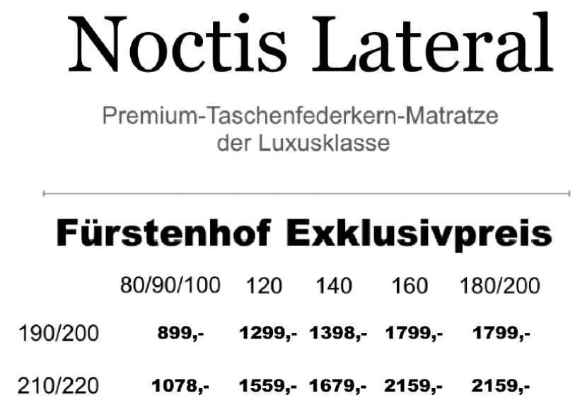 Mit ihrer 4,3‑Sterne‑Bewertung steht die Noctis Lateral für gehobene Qualität und spürbar ergonomischen Komfort – ideal für Schläfer, die Wert auf Körperanpassung, Stabilität und ein ausgewogenes Schlafklima legen.
