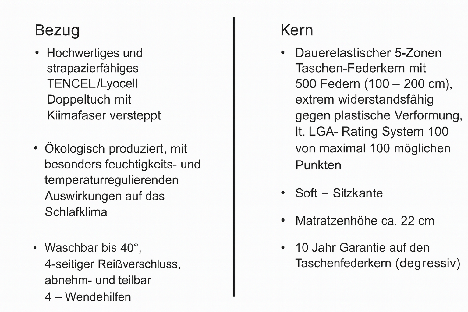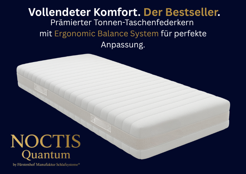 Mit ihrer 5,0-Sterne-Bewertung steht die Noctis Quantum für höchste Kundenzufriedenheit, technische Reife und nachhaltige Qualität. Als Bestseller der Serie kombiniert sie innovative Federtechnologie, langlebige Materialien und ein Liegegefühl, das begeistert.