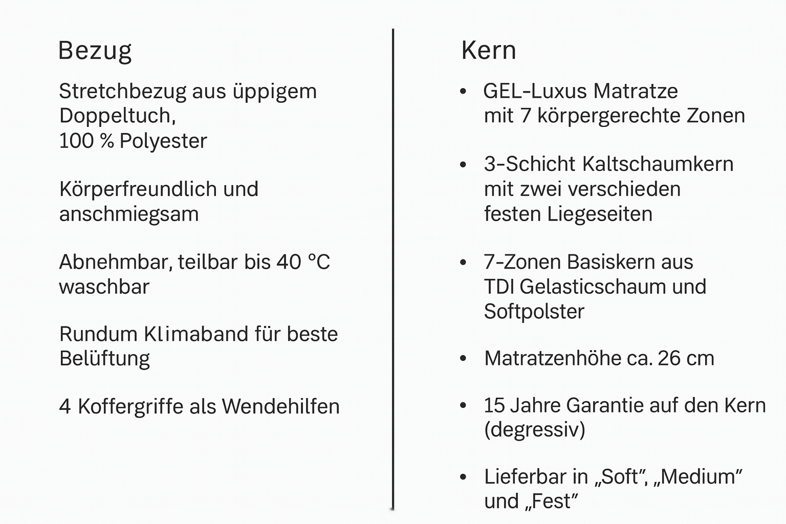 Die aufeinander abgestimmte Schaumarchitektur unterstützt eine natürliche Schlafhaltung und gewährleistet eine gleichmäßige Druckverteilung über die gesamte Liegefläche. Das Ergebnis ist ein ruhiger, ausbalancierter Liegekomfort, der Stabilität und Sanftheit in perfektem Verhältnis vereint.