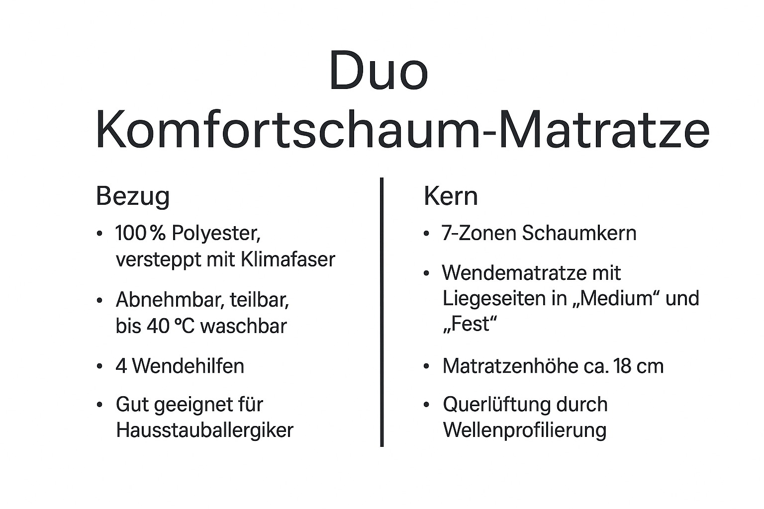 Die Noctis Solis KS ist eine zuverlässige und solide Komfortschaummatratze für alle, die angenehmen Schlafkomfort zu einem fairen Preis suchen. Ihr formstabiler Komfortschaumkern sorgt für eine gleichmäßige Unterstützung des Körpers und bietet ein ausgewogenes Liegegefühl mit sanfter Anpassung – ideal für eine ruhige, entspannte Nacht.